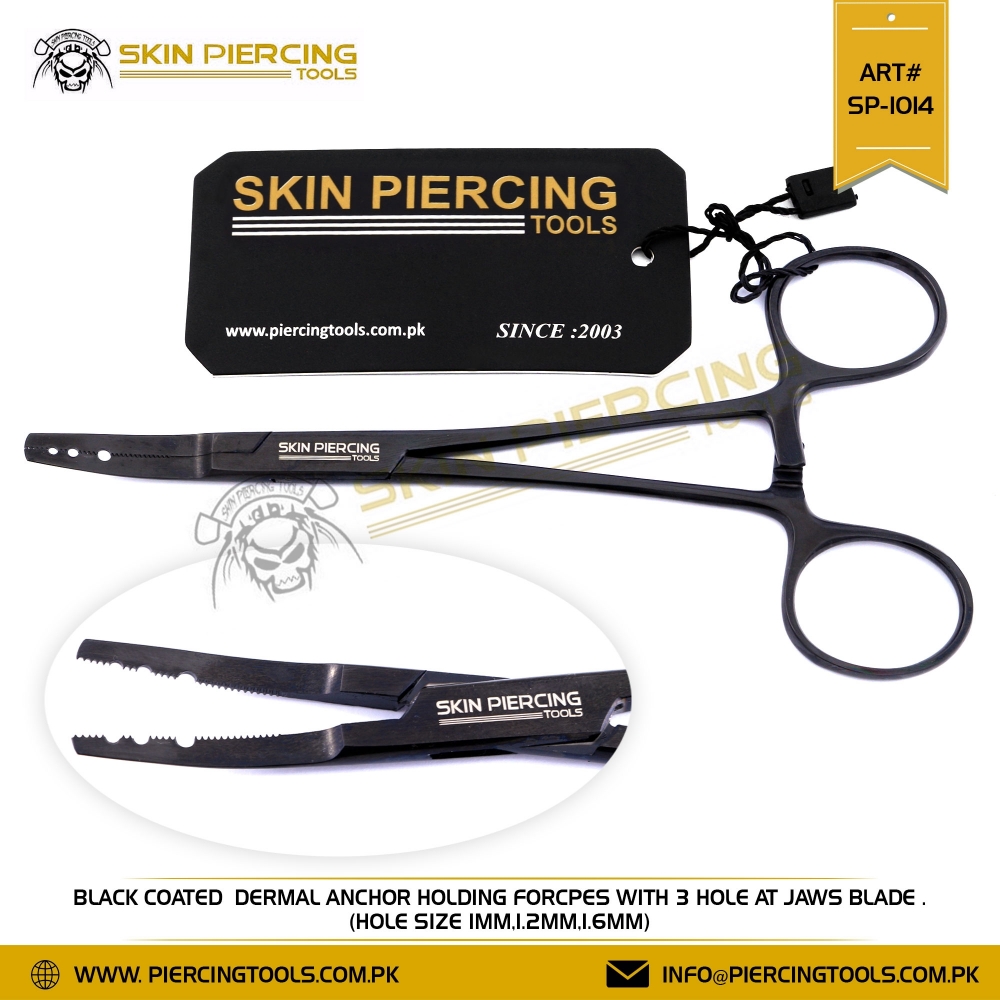 Black Coated Dermal Anchor Holding Forcpes with 3 Hole at Jaws Blade . (HOLE SIZE 1MM,1.2MM,1.6MM)