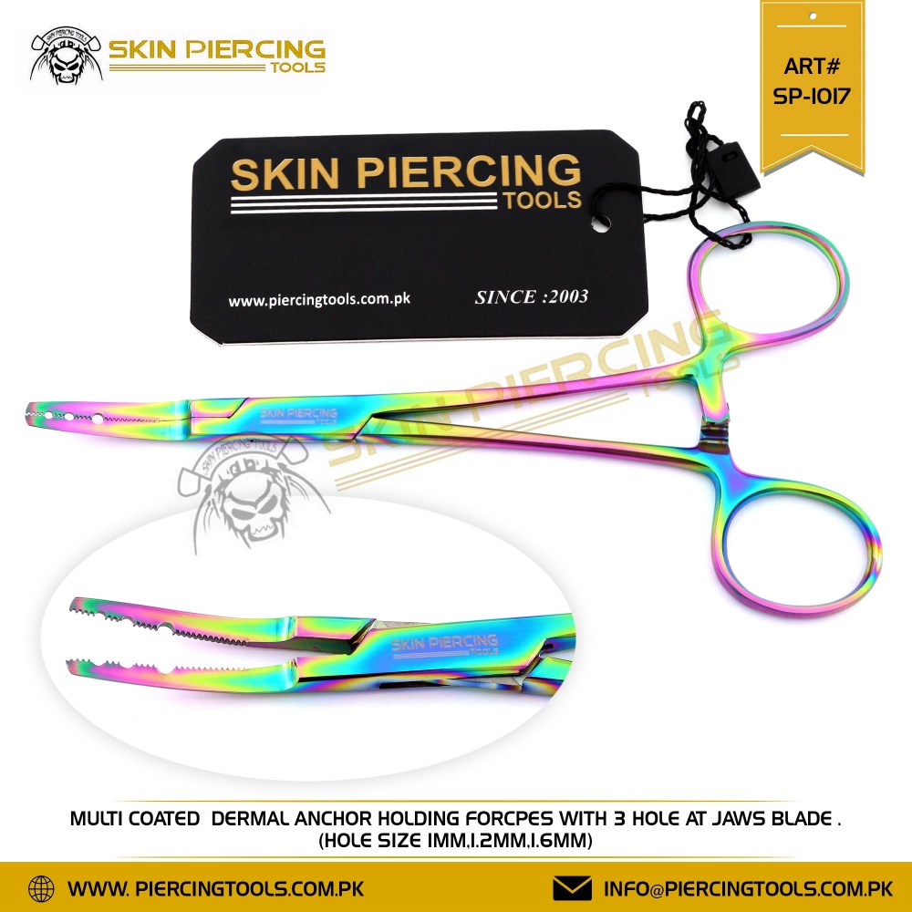 Multi Coated Dermal Anchor Holding Forcpes with 3 Hole at Jaws Blade . (HOLE SIZE 1MM,1.2MM,1.6MM)