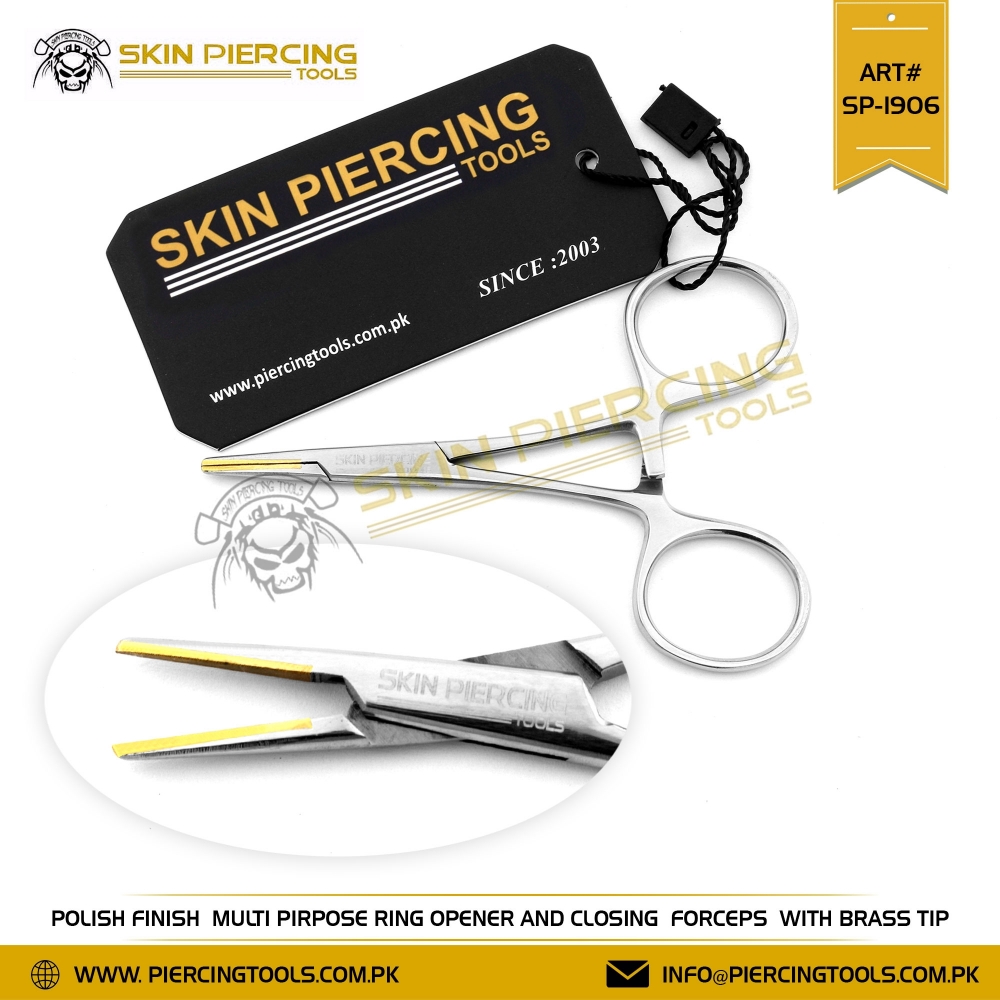 POLISH FINISH MULTI PIRPOSE RING OPENER AND CLOSING FORCEPS WITH BRASS TIP