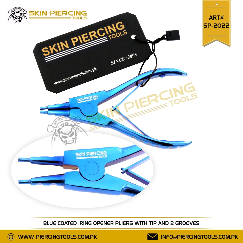 BLUE COATED RING OPENER PLIERS WITH TIP AND 2 GROOVES