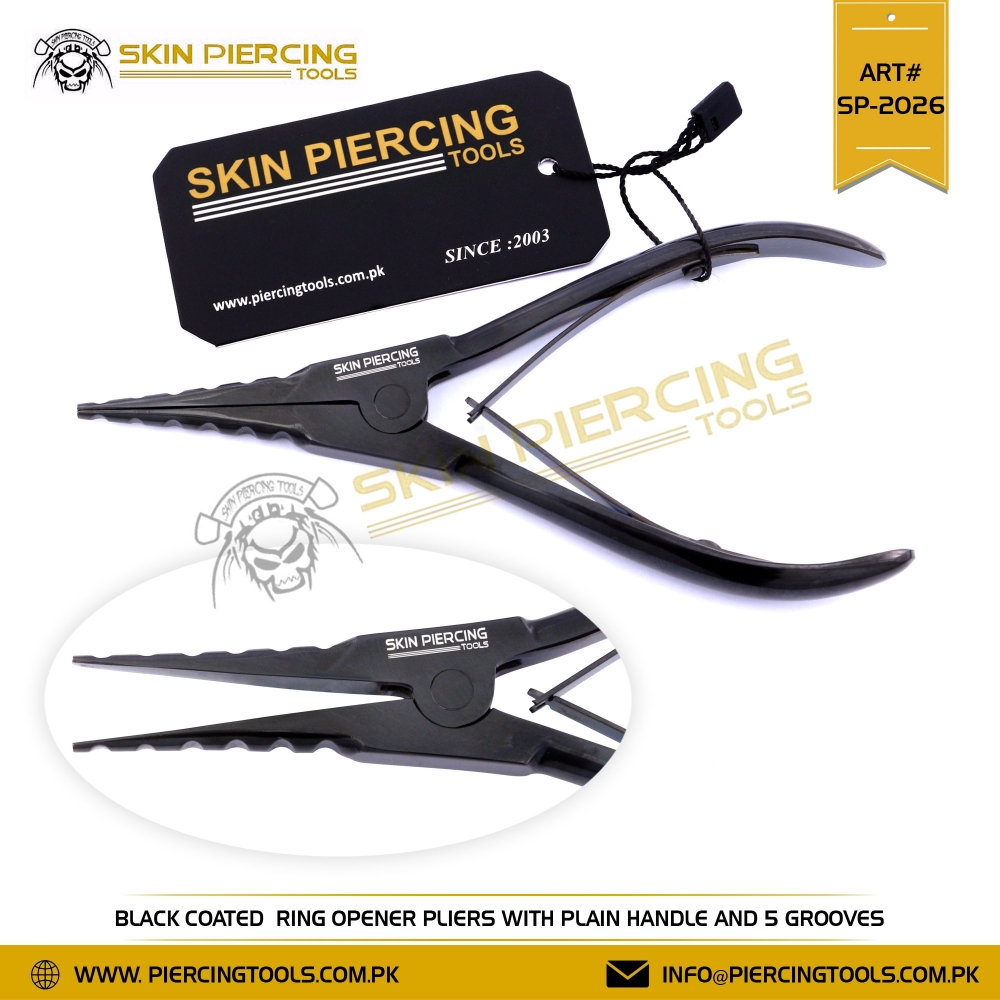 BLACK COATED RING OPENER PLIERS WITH PLAIN HANDLE AND 5 GROOVES