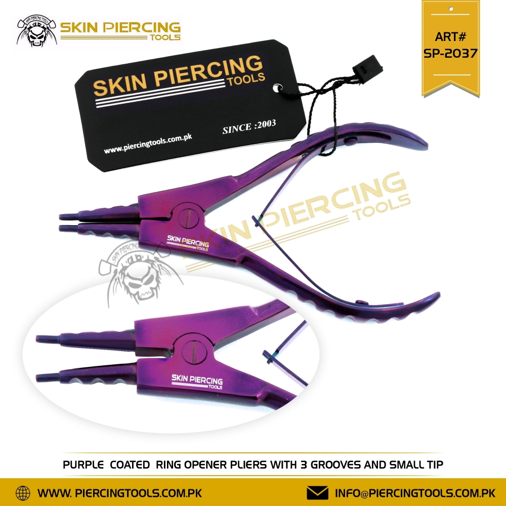 PURPLE COATED RING OPENER PLIERS WITH 3 GROOVES AND SMALL TIP