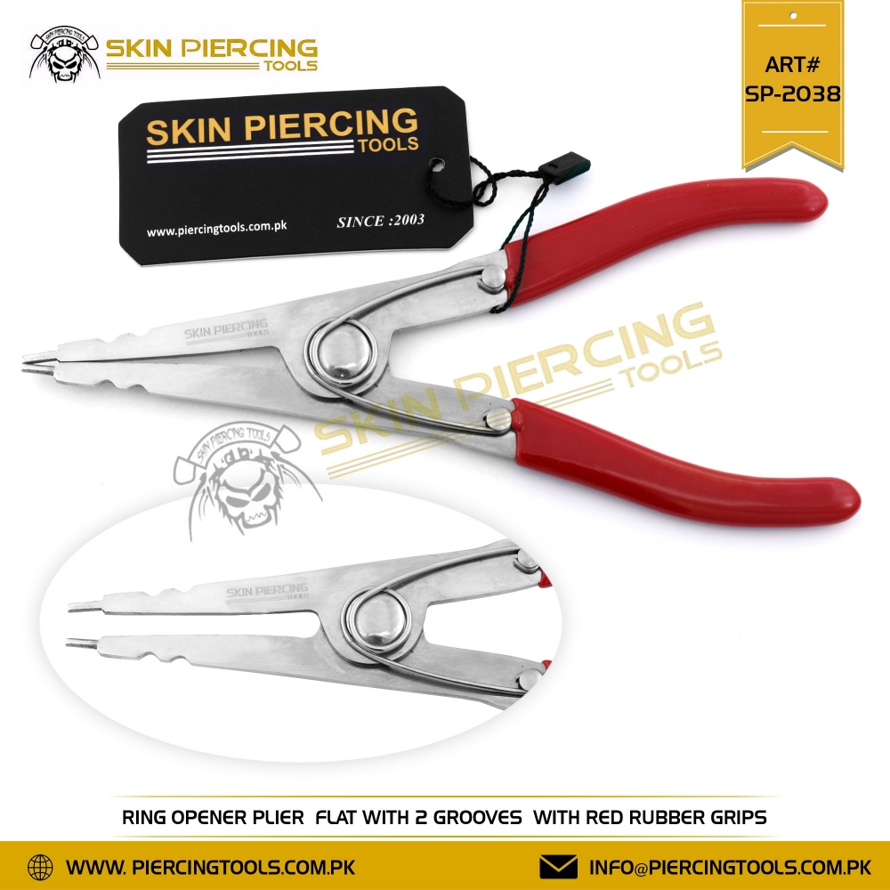 RING OPENER PLIER FLAT WITH 2 GROOVES WITH RED RUBBER GRIPS