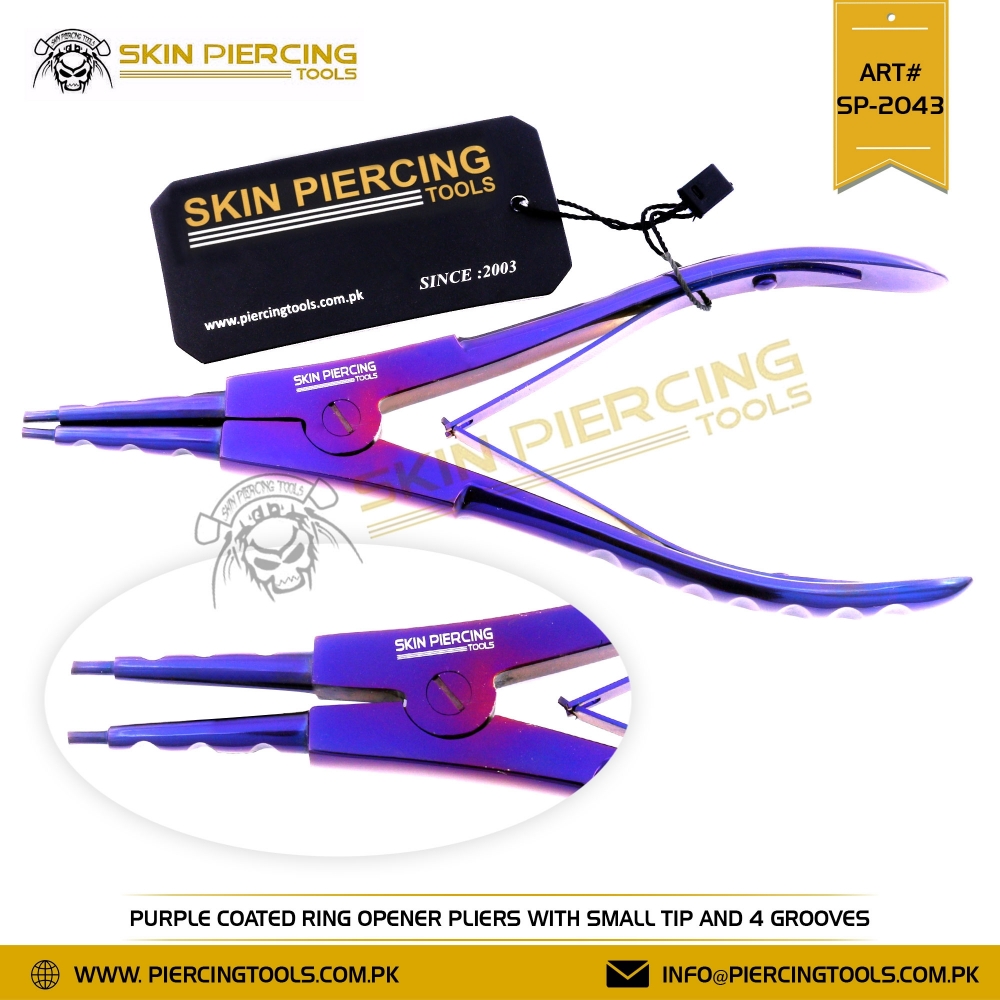 PURPLE COATED RING OPENER PLIERS WITH SMALL TIP AND 4 GROOVES